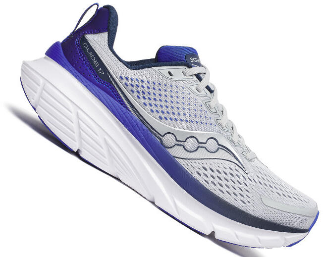 SAUCONY GUIDE 17 Férfi futócipő - Egy új korszak a komfort és a stabilitás jegyében A SAUCONY GUIDE 17 új, forradalmi változást hoz a SAUCONY stabil kollekciójában. A korábbi stabilitást bizztosító anyagokat felváltja a stabil cipő új értelmezése, mely a rigid, kemény anyagok alakalmazása helyett a szélesebb platformmal, a magasabb oldalfal panelekkel és az asszimetrikus p