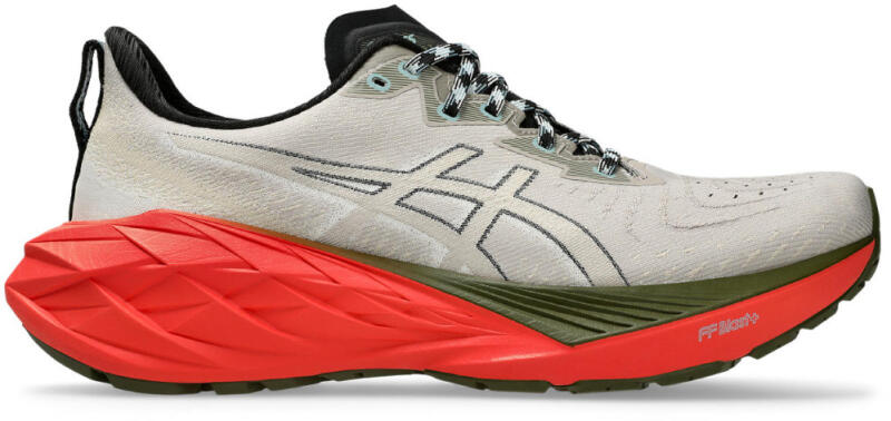 Az Asics NOVABLAST® 4 TR futócipő ruganyos érzést biztosít, magas energia-visszanyeréssel . Trail-specifikus külső talppal tervezték, amely funkcionális terepen való futáshoz. A felsőrészben található nyelv-konstrukció segít javítani az illeszkedést , miközben csökkenti a nyelv mozgását. Továbbá a felsőrészt egy támogató sarok kialakítással erősítették meg, hogy