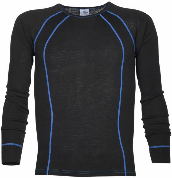 Kellemes, funkcionális merinó anyagú póló, hosszú ujjú és kontrasztos kék öltésekkel készül. Kiváló minőségű 50% merinó gyapjúból és 50% poliészterből készül, 200 g/m2 súllyal (kiválóan melegít, nedvesség felszívódása a térfogat 30% -áig - gyorsan felmelegszik, és nem hűti le a gyapjút, antibakteriális képességekkel rendelkezik). Kínálatunkban találsz t