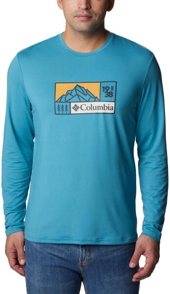 Columbia férfi A Tech Trail Long Sleeve Graphic egy hosszú ujjú, a mellrészen nagy printtel nyomott, férfi technikai sport póló a Columbia kínálatából. A kifejezetten kellemes tapintású póló szinte bármilyen aktív sporttevékenységhez felhasználható, legyen az kerékpározás, futás, túrázás, vagy beltéri, edzőtermi aktivitás. Nem kell tartani a befülledéstől, hiszen