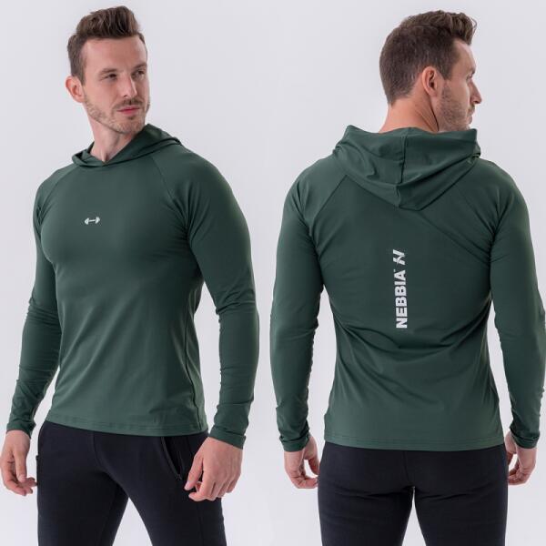 A NEBBIA hosszú ujjú kapucnis póló vonzó, sötétzöld kivitelben az ideális választás a kora őszi edzéshez!