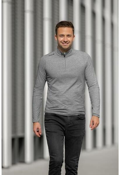 A puha, bolyhosodásgátló anyag rendkívül légáteresztő és könnyű. Gyorsan száradó az egész napos kényelem érdekében. A 4-Way Stretch technológia minden irányban jobb mozgást tesz lehetővé. Az anyag elvezeti az izzadságot és nagyon gyorsan szárad. Az UPF 30 szintű védelem biztosítja a bőrt a káros napsugaraktól. Bordázott sportos bombergallér és minimalista bekapcso