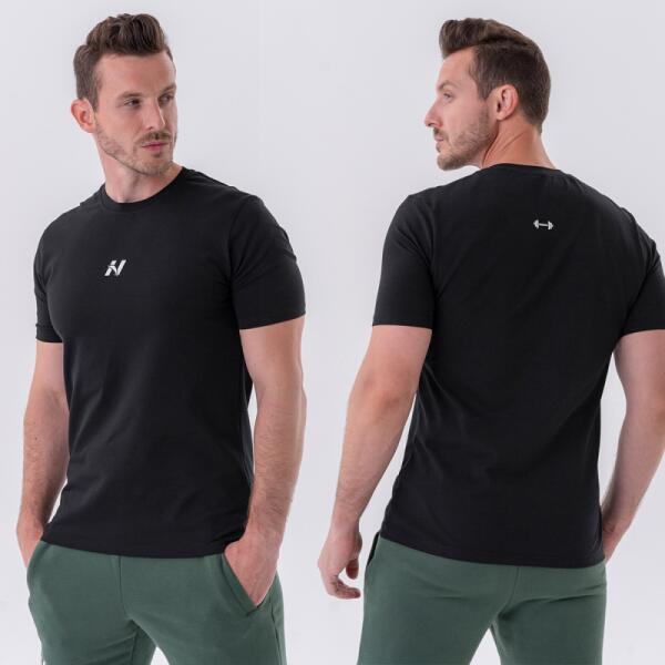 Férfi pamut póló fekete színben a NEBBIA márkától fényvisszaverő logóval minimalista dizájnnal az új funkcionális NEXT LEVEL kollekcióból.