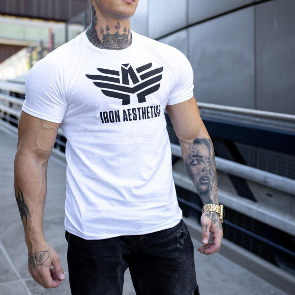 Az Iron Aesthetics fitness póló 100% Ring Spun pamutból készült, ezért kiválóan alkalmazkodik mindenfajta alkathoz és tökéletesen kiemeli a kidolgozott testet. Rendkívül kényelmes és kellemes, légáteresztő és nem akadályoz a mozgásban. Mérettáblázat * Mérd meg a ruházatodat (pl. a kedvenc pólódat) és ne magadat. MÉRETSMLXLXXLXXXL A (MELLSZÉLESSÉG) 46 cm 51 cm 56 cm