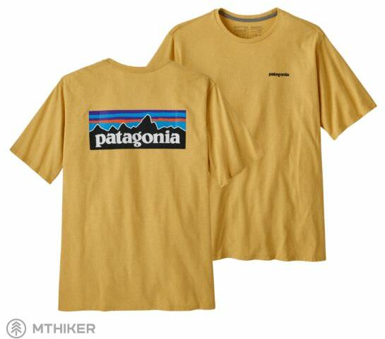 Patagonia P-6 Logo Responsibili-Tee Klasszikus grafika alacsony szén-dioxid-kibocsátású Patagonia pólón . A póló 100%-ban újrahasznosított anyagból készült. Maradék anyagok és újrahasznosított palackok felhasználásával csökkenti az eredeti anyagoktól való függőséget.