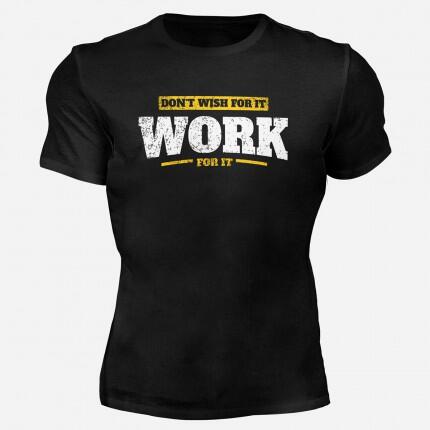 Ha hiányzik az elhivatottságod, a motivációd, vedd fel a Don’t wish for it WORK for it (Ne kívánd, tegyél ért) gyúrós pólót, és meríts erőt az üzenetéből.