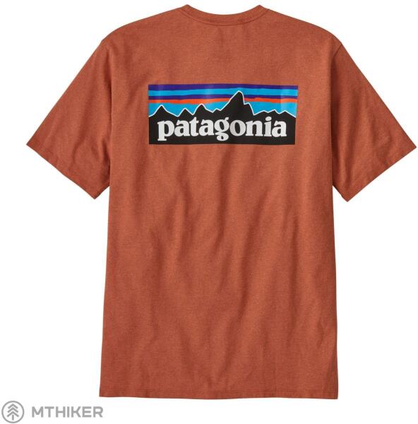 Patagonia P-6 Logo Responsibili-Tee Klasszikus grafika alacsony szén-dioxid-kibocsátású Patagonia pólón . A póló 100%-ban újrahasznosított anyagból készült. Maradék anyagok és újrahasznosított palackok felhasználásával csökkenti az eredeti anyagoktól való függőséget.