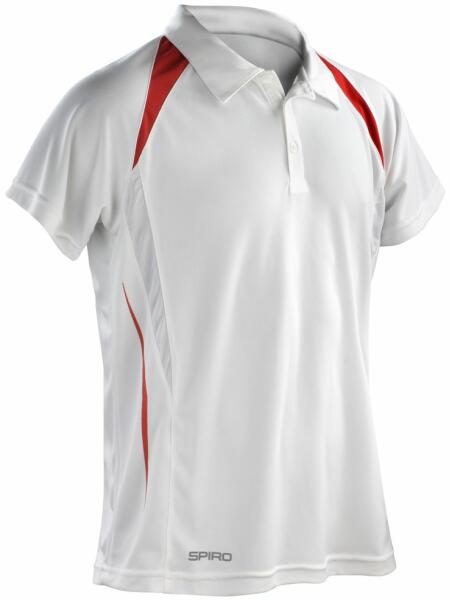 Könnyű, funkcionális férfi galléros póló, mely ideális különféle sporttevékenységekhez. Puha, légáteresztő és gyorsan száradó COOL-DRY® anyagból készült, sejtvászon szövésű, amely elvezeti az izzadságot a testtől, így kényelmes, száraz és hűvös marad. Puha tapintású gallérral és 3 gombos gombsorral rendelkezik. A póló extra légáteresztő oldalsó panelekk