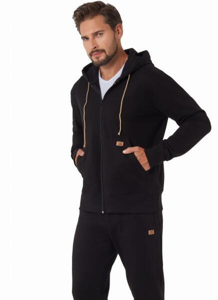 Anyag: 95% pamut, 5% elasztán Kiváló minőségű pamut kötött tréningruha anyag Teljes hosszúságú, cipzáras pulóver Csuklya húzózsinórral a kerület beállításához Praktikus bordázott mandzsetta és alsó szegély Funkcionális oldalzsebek Elegáns gyártói logófolt Tompított színekben kapható Kombinálható melegítőnadrággal Lengyelországban tervezett és varrt termék