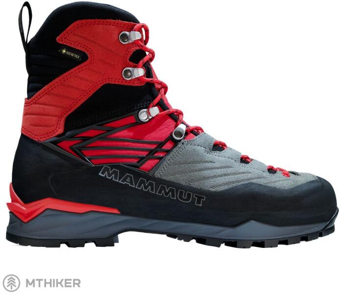 Férfi cipő Kento Pro High GTX® A Mammut férfi klasszikus három évszakos hegymászó cipő. A hibrid héj biztosítja a kényelmet és növeli az alkalmazkodóképességet a belső rugalmas anyagok és a külső merev anyagok kombinációjának köszönhetően. A GORE-TEX membrán biztosítja a vízállóságot és a légáteresztő képességet. Ez a technikai cipő kompatibilis a macskákka