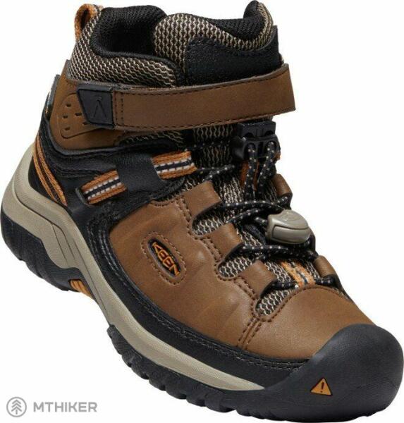 KEEN TARGHEE MID WP gyerekcipő Magasabb fényű, vízálló KEEN Targhee MID cipő KEEN. DRY membránnal, szabadidős tevékenységekhez, túrázáshoz és új kalandok felfedezéséhez. A cipő felső része vízálló bőrből és erős hálóból készült. Belül a cipő kivehető EVA betéttel van felszerelve, a jobb stabilitást az egyenetlen terepen való mozgáshoz a befecskendezett TPU