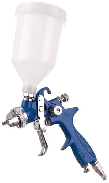 Szórópisztoly HVLP kék 2,5 mm TARTÁLY: 600 ml hagyományos belső menetes tartály. Csatlakozó: A pisztoly 1/4" menettel van felszerelve.