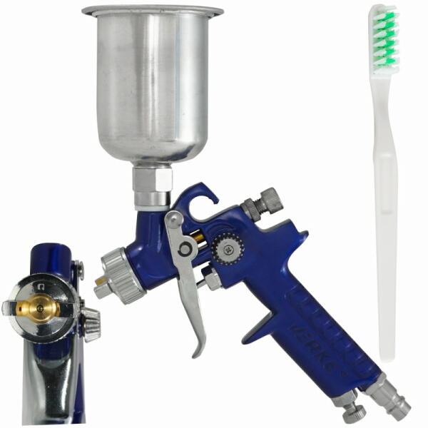 Ismertetés Felső tartályos Állítható festék és levegő keverékarány Akril vizes, és oldószeres festékekhez is alkalmazható Lakkozott felületek festésére is alkalmas Állítható festékadagolás Szabályozható szórási szög Anyaga: aluminium, műanyag Fúvóka: 1.4mm Levegőnyomás: 3-4bar Tartály kapacitás: 600ml Levegő fogyasztás: 84-141l/perc Részletekért kattintson id