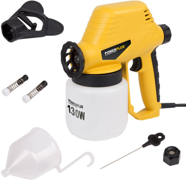 Ezzel az elektromos festékszóró pisztollyal könnyen lakkozhat vagy festhet kerti kerítést, bútorokat, ajtókat, ablakokat, falakat stb. Csak töltse fel a tartályt alapozóval, lakkal vagy festékkel, és kezdje el a permetezést. Szabályozhatja a festék áramlását a tiszta és egyenletes eredmény érdekében. Garancia (fogyasztóknak): 2 év - Névleges teljesítmény: 130 W - Névle