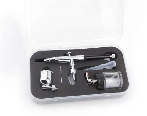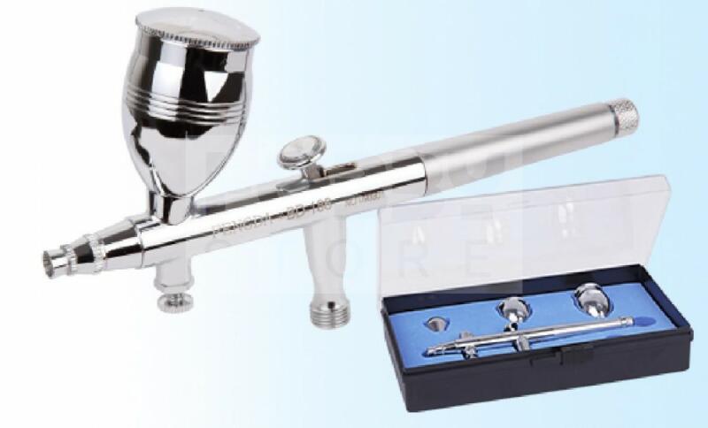 Oldalsó tartályos, belső keverésű, két funkciós szórópisztoly fixálható szórásképpel. Tulajdonságok: - Düzni/tű: Dia. 0.3 mm - Üvegtartály mérete: 7cc és 22cc - Üzemi nyomás: 15-50psi A szórópisztolyhoz levegőkompresszor használata az ajánlott, mert a sűrített levegős palackok nem tudják radikális nyomáscsökkenés nélkül kiszolgálni az eszközt!