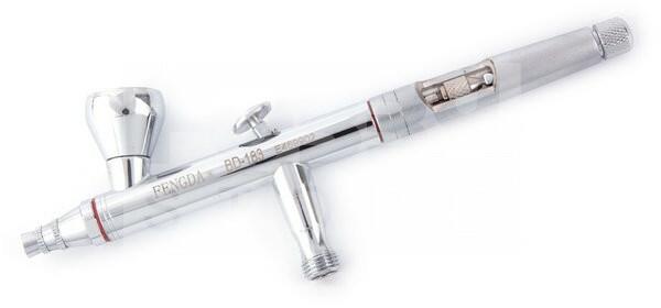 FENGDA BD-183 típusú szórópisztoly (Airbrush) 0.5-ös dűznivel-tűvel BD-183 Felső tartályos, belső keverésű, két funkciós szórópisztoly fixálható szórásképpel a finom, precíz és közepes munkákhoz. A termék három különböző méretű zárható tartállyal rendelkezik, és állítható tűhatárolóval. Kifejezetten alkalmas modellezéshez, makettezéshez, testfestéshez,