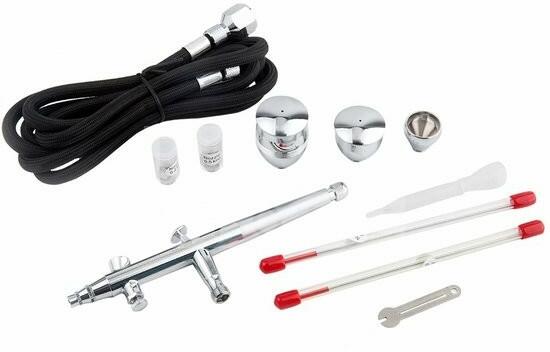 FENGDA BD-186K Szórópisztoly készlet (Airbrush Gun Set) 0.2-0.3-0.5-öss dűznivel-tűvel és légkábellel BD-186K Kétakciós szórópisztoly (airbrush) mely kifejezetten alkalmas a legprecízebb és nagyon finom munkákhoz egyaránt. A termék három külnböző méretű festék tartállyal rendelkezik. Tűhatárolóval és levegőszabályzóval ellátva. Kifejezetten alkalmas modellezéshez