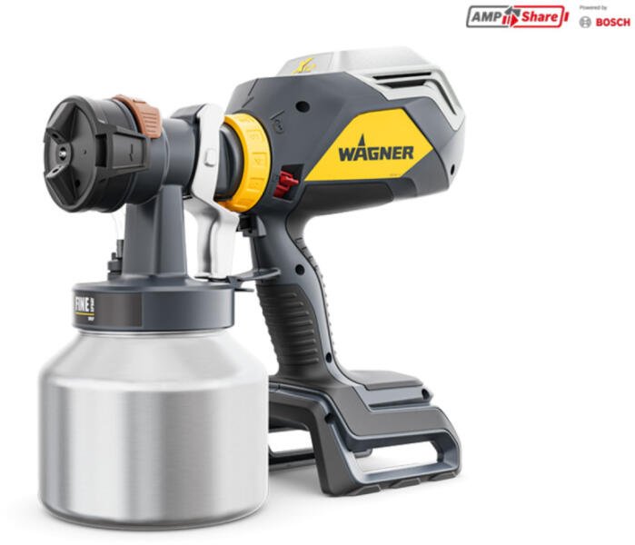 WAGNER FinishControl 4000 18V FineSpray A FinishControl 4000 akkumulátoros profi XVLP festékszóró. A turbina alacsony nyomáson, nagy mennyiségű levegővel porlasztja a festéket a felületre. A szórósugár alakja és mérete is könnyen állítható. A szórósugarat levegőköpeny veszi körül, ezzel csökken a festékköd és a szükséges maszkolás mérete. A turbina teljesítménye
