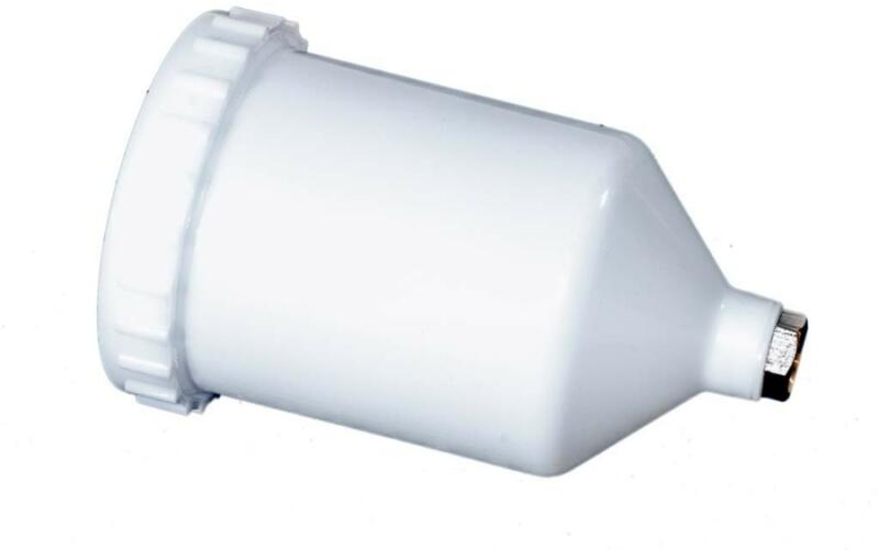Festékszóró pisztolyhoz felső tartály. Elsősorban az F. H-827 és F. H-881 cikkszámú 1.4/1.7/2.0 festékszóró pisztolyhoz alkalmas. Specifikációk Űrtartalom: 600 ml Csomagolás: 110x190x110 mm-es kartondoboz Szélesség: 100 mm Mélység: 100 mm Magasság: 180 mm Anyag:műanyag, réz belsőmenetes csatlakozóval.