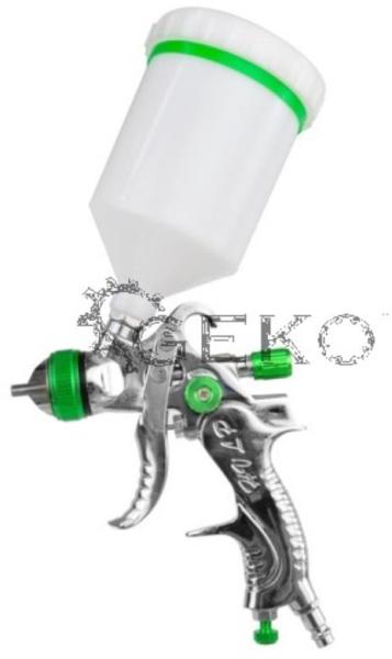 Festékszóró pisztoly DRAGON HVLP 1.4 mm GEKO PROFI Professzionális kisnyomású szórópisztoly Dragon HVLP GEKO . A legjobb minőségű anyagokból készül. A pisztoly sűrített levegővel működik . A kompresszorból érkező levegő eléri a festéktartályt és a fúvókát. Az így kapott nyomás „kitolja a folyadékot a tartályból, és a porlasztott festék részecskéket kiadja e