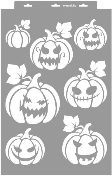 A különböző rémisztő arcokkal faragott tökök a Halloween elmaradhatatlan jelképei. Tartós, többször felhasználható áttetsző, rugalmas műanyag stencil. Ívelt felületekhez is használható. Felhasználói tippek: 1. Helyezd a festeni kívánt felületre a stencilt, rögzítsd maszkolószalag segítségével. 2. Kerek stencil-ecsettel vagy szivacsecsettel körkörös mozdulatokkal