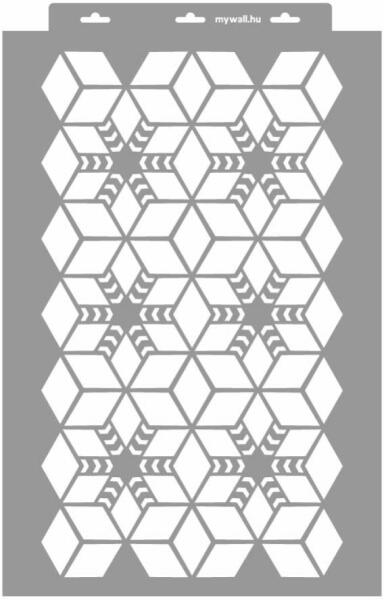 Minden irányban folytatható különböző léptékű stilizált csillagminta. Tartós, többször felhasználható áttetsző, rugalmas műanyag stencil. Ívelt felületekhez is használható. Felhasználói tippek: 1. Helyezd a festeni kívánt felületre a stencilt, rögzítsd maszkolószalag segítségével. 2. Kerek stencil-ecsettel vagy szivacsecsettel körkörös mozdulatokkal dolgozva vid