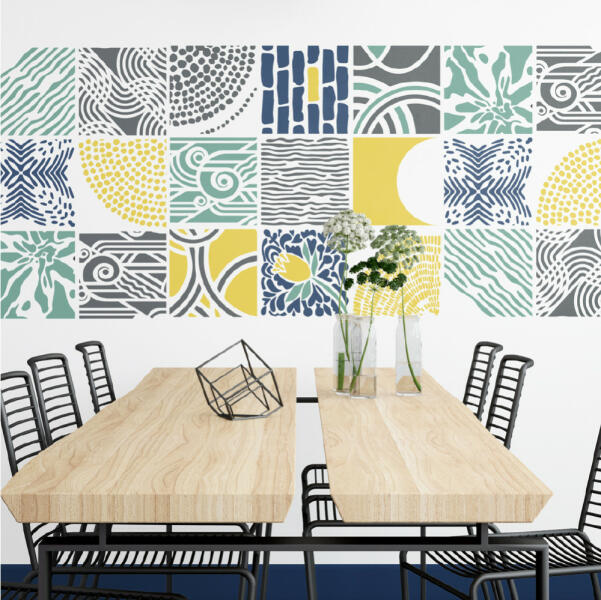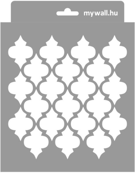 Ennél a marokkói mintánál a fal alapszíne adja a rácsvonalakat. A minta minden irányban folytatható. A nagy léptékűek falon, a kisebbek bútoron érvényesülnek leginkább. Tartós, többször felhasználható áttetsző, rugalmas műanyag stencil. Ívelt felületekhez is használható. Felhasználói tippek: 1. Helyezd a festeni kívánt felületre a stencilt, rögzítsd maszkolószal