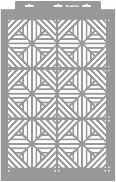 A Diagonal 08 stencil egy minimalista és geometrikus design, amely inspirációját a klasszikus csempemintáktól veszi. Az egyenes vonalak és szögletes formák tökéletesen illeszkednek egymáshoz, hogy egy szép és letisztult mintát hozzanak létre, amely tökéletesen alkalmas dekorációs célokra. Tartós, többször felhasználható áttetsző, rugalmas műanyag stencil. Ívelt felül