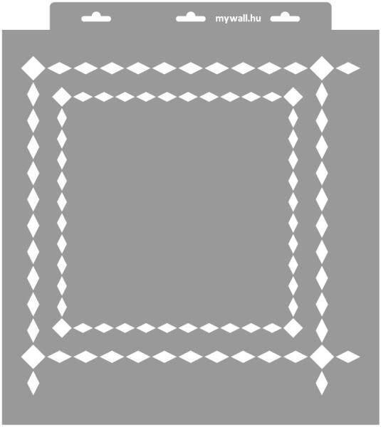Elegáns szegély, és sarokminták. Ha szereted az antikot, a blondel kereteket, ez a design is tetszeni fog. Vintage dekoráció eleme lehet. Tartós, többször felhasználható áttetsző, rugalmas műanyag stencil. Ívelt felületekhez is használható. Felhasználói tippek: 1. Helyezd a festeni kívánt felületre a stencilt, rögzítsd maszkolószalag segítségével. 2. Kerek stencil-ecse