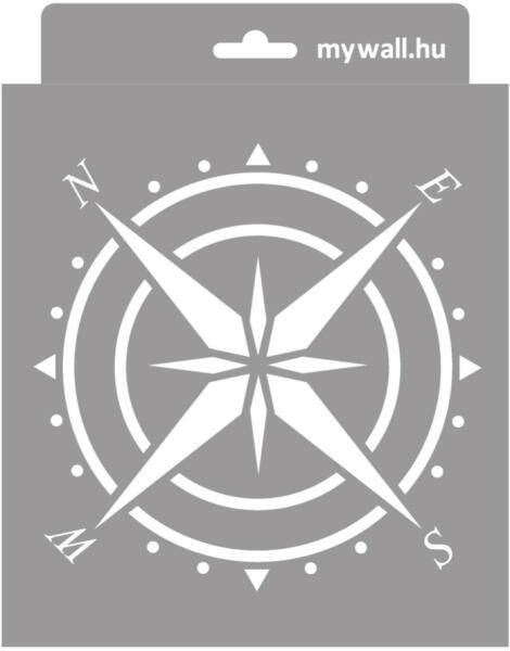 Iránytű a falon, terasz padlóján, díszpárnán, bárhol. Ezt a stencilt kreatív vásárlóink nagyon szeretik, és a legkülönbözőbb felületeken használják festésre, vagy glettelésre. Tartós, többször felhasználható áttetsző, rugalmas műanyag stencil. Ívelt felületekhez is használható. Felhasználói tippek: 1. Helyezd a festeni kívánt felületre a stencilt, rögzítsd