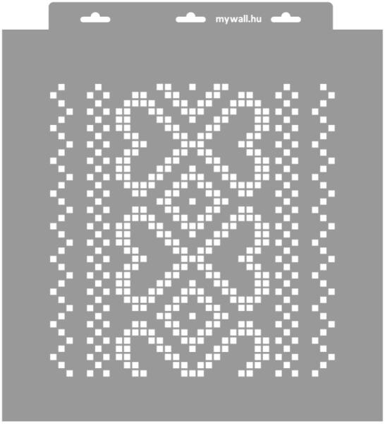 A szabolcsi keresztszemes hímzésminták egyik legszebb életfa motívumát festheted meg ezzel a stencillel. A csarodai pacsirtás falvédőhöz tartozó minta ez, de önállóan is megállja helyét. A dupla szívsor változat szőttesre emlékeztető motívum. Modern mai otthonokban is méltó tisztelettel adózhatunk ezzel az újragondolt magyar díszítőtechnikával. Festő, és 3D változa