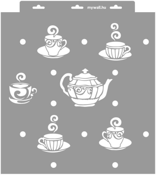 Kedves kis csészikék és teáskannák sorakoznak ezeken a stencileken. Akár teljes konyhafalon, abroszon, konyharuhán vagy kötényen használod, biztosan nagy sikere lesz. Tartós, többször felhasználható áttetsző, rugalmas műanyag stencil. Ívelt felületekhez is használható. Felhasználói tippek: 1. Helyezd a festeni kívánt felületre a stencilt, rögzítsd maszkolószalag segí