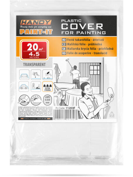 Festő takarófólia - LDPE - extra erős - 30 mikron - 4 x 5 m Háztartási takarófólia, amely bármilyen takarási célra megfelelő választás. Ideális lehet festési munkálatoknál bútoraink, padlónk védeme érdekében, de kiválóan használható felújítási munkálatok során keletkező szállópor ellen is. Extra erős védelem Nagyméretű fólia Megfelelő védelem Könnyű keze