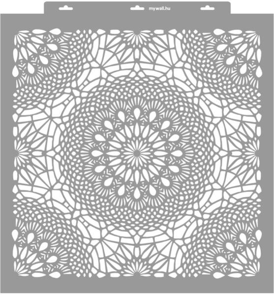 Nagyanyáink horgolt csipkéi a mai lakásokban új szerepet ölthetnek. Tartós, többször felhasználható áttetsző, rugalmas műanyag stencil. Ívelt felületekhez is használható. Felhasználói tippek: 1. Helyezd a festeni kívánt felületre a stencilt, rögzítsd maszkolószalag segítségével. 2. Kerek stencil-ecsettel vagy szivacsecsettel körkörös mozdulatokkal dolgozva vidd fel a