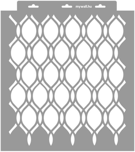 Egyszerű, de nagyszerű alap geometrikus hálóminta. Rusztikus bútorokon remekül mutat. Minden irányba folytatható. Tartós, többször felhasználható áttetsző, rugalmas műanyag stencil. Ívelt felületekhez is használható. Felhasználói tippek: 1. Helyezd a festeni kívánt felületre a stencilt, rögzítsd maszkolószalag segítségével. 2. Kerek stencil-ecsettel vagy szivacsecset
