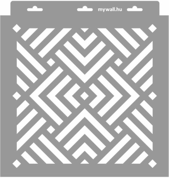 Minden irányba folytatható geometrikus mintájú stencil többféle léptékben. Tartós, többször felhasználható áttetsző, rugalmas műanyag stencil. Ívelt felületekhez is használható. Felhasználói tippek: 1. Helyezd a festeni kívánt felületre a stencilt, rögzítsd maszkolószalag segítségével. 2. Kerek stencil-ecsettel vagy szivacsecsettel körkörös mozdulatokkal dolgozva