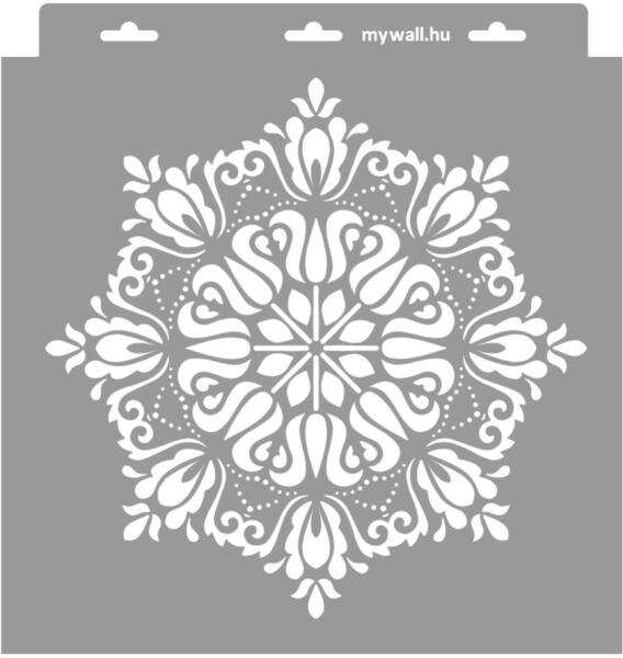 Mandala, de most magyaros motívumokkal körítve. Szakítunk a megszokottal, és a keleti mandalák helyett, rendhagyó módon bemutatjuk ezt a matyó tulipánokkal díszített mandala stencilt. Fedezd fel a tradíciók és a modern stílus egyedülálló keverékét ebben az egyedi mintában! Tartós, többször felhasználható áttetsző, rugalmas műanyag stencil. Ívelt felületekhez is hasz
