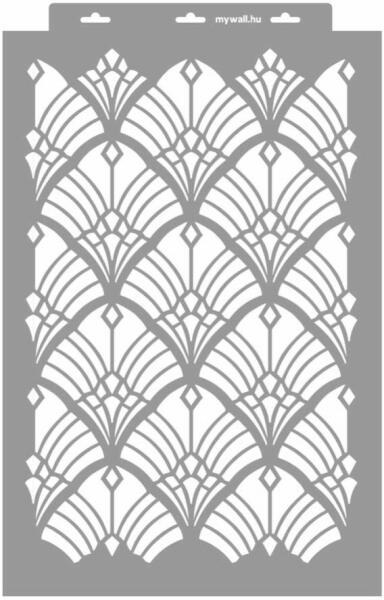 Minden irányba folytatható elegáns íves minta (nem csak) az artdeco szerelmeseinek. Tartós, többször felhasználható áttetsző, rugalmas műanyag stencil. Ívelt felületekhez is használható. Felhasználói tippek: 1. Helyezd a festeni kívánt felületre a stencilt, rögzítsd maszkolószalag segítségével. 2. Kerek stencil-ecsettel vagy szivacsecsettel körkörös mozdulatokkal dolg