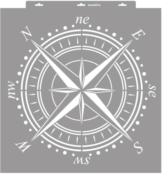 Iránytű a falon, terasz padlóján, díszpárnán, bárhol. Ezt a stencilt kreatív vásárlóink nagyon szeretik, és a legkülönbözőbb felületeken használják festésre, vagy glettelésre. Tartós, többször felhasználható áttetsző, rugalmas műanyag stencil. Ívelt felületekhez is használható. Felhasználói tippek: 1. Helyezd a festeni kívánt felületre a stencilt, rögzítsd