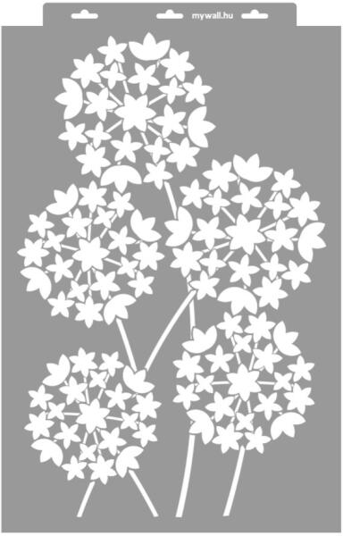 Tavasszal, a kertemben nyíló óriás díszhagyma virága ihlette ezt a stencilcsaládot. A virágok szárát folytatva gyönyörű önálló falfestés készíthető vele, de cak a virágfelyek is használhatók. A pontos méreteket a képeknél találod. Tartós, többször felhasználható áttetsző, rugalmas műanyag stencil. Ívelt felületekhez is használható. Felhasználói tippek: 1. H