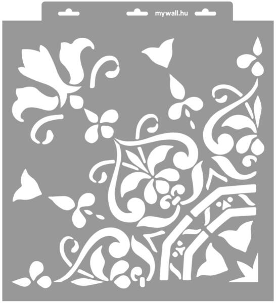 Frízekből építkezik ez a gyönyörű, kovácsoltvas hatású minta. Számtalan lehetőség rejlik még ebben a kollekcióban, légy kreatív! Tartós, többször felhasználható áttetsző, rugalmas műanyag stencil. Ívelt felületekhez is használható. Felhasználói tippek: 1. Helyezd a festeni kívánt felületre a stencilt, rögzítsd maszkolószalag segítségével. 2. Kerek stencil-ec