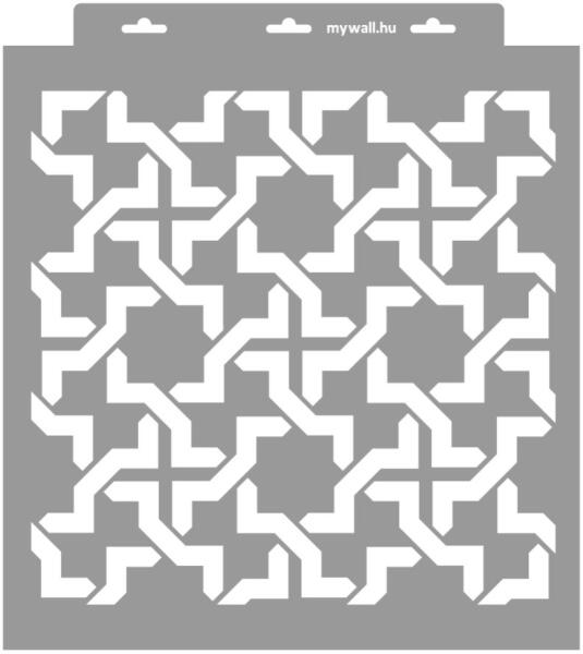 Minden irányban folytatható klasszikus marokkói rácsminta. A nagy léptékű falon, a kisebbek bútoron érvényesülnek leginkább. Tartós, többször felhasználható áttetsző, rugalmas műanyag stencil. Ívelt felületekhez is használható. Felhasználói tippek: 1. Helyezd a festeni kívánt felületre a stencilt, rögzítsd maszkolószalag segítségével. 2. Kerek stencil-ecsettel va