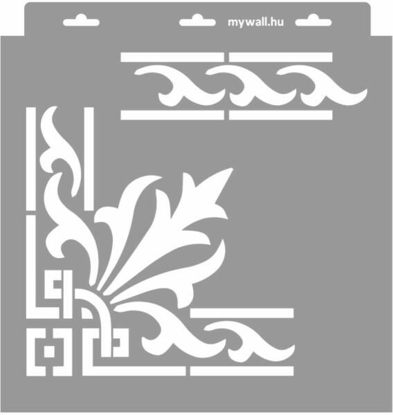 Minden irányba folytatható, és körbe rakható stencilek adják ki ennek a stencilnek a végső formáját. Méreteket lásd a képeken. Tartós, többször felhasználható áttetsző, rugalmas műanyag stencil. Ívelt felületekhez is használható. Felhasználói tippek: 1. Helyezd a festeni kívánt felületre a stencilt, rögzítsd maszkolószalag segítségével. 2. Kerek stencil-ecsettel