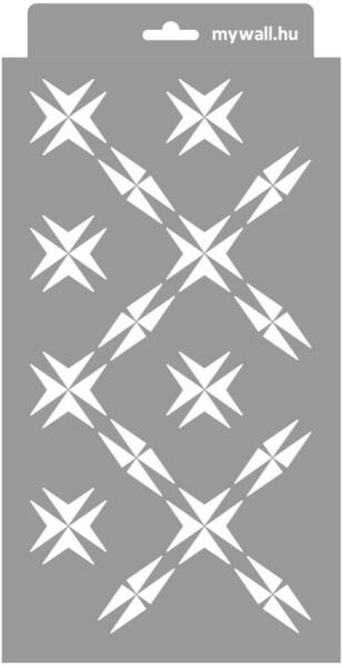 Minden irányban folytatható különböző léptékű stilizált csillagminta. Tartós, többször felhasználható áttetsző, rugalmas műanyag stencil. Ívelt felületekhez is használható. Felhasználói tippek: 1. Helyezd a festeni kívánt felületre a stencilt, rögzítsd maszkolószalag segítségével. 2. Kerek stencil-ecsettel vagy szivacsecsettel körkörös mozdulatokkal dolgozva vid