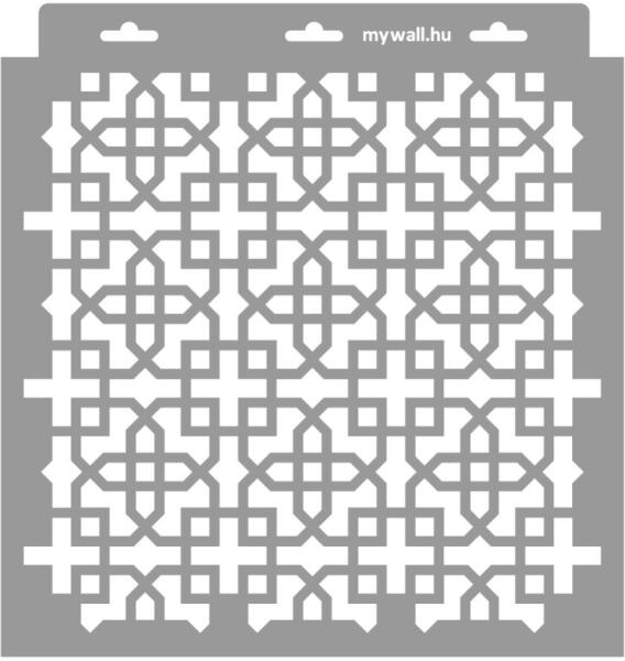 Minden irányban folytatható klasszikus marokkói rácsminta. Dekorfal készítéséhez használd a 3D változatot. Tartós, többször felhasználható áttetsző, rugalmas műanyag stencil. Ívelt felületekhez is használható. Felhasználói tippek: 1. Helyezd a festeni kívánt felületre a stencilt, rögzítsd maszkolószalag segítségével. 2. Kerek stencil-ecsettel vagy szivacsecsettel k