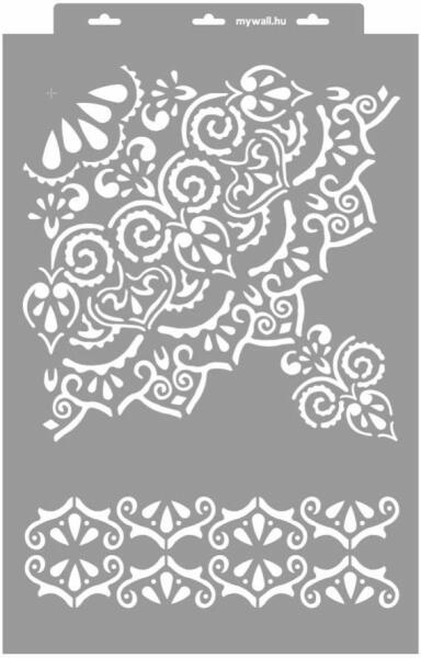 Egzotikus indiai minta. Az illesztési pontoknak köszönhetően minden irányba folytatható. Tartós, többször felhasználható áttetsző, rugalmas műanyag stencil. Ívelt felületekhez is használható. Felhasználói tippek: 1. Helyezd a festeni kívánt felületre a stencilt, rögzítsd maszkolószalag segítségével. 2. Kerek stencil-ecsettel vagy szivacsecsettel körkörös mozdulatokk