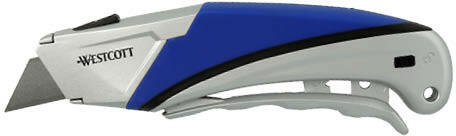 Biztonsági kés fogó markolattal és teljesen automatikus pengevisszahúzással. TÜV minősítéssel. 32612 cikkszámú csere penge használható hozzá. .