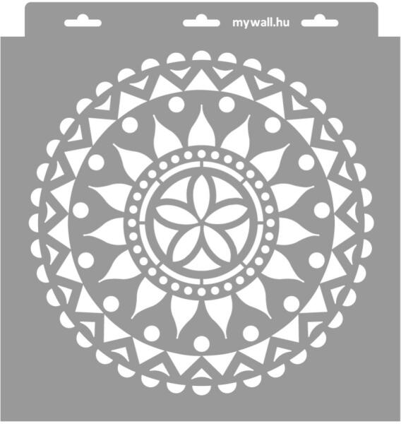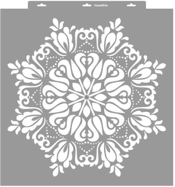 Mandala, de most magyaros motívumokkal körítve. Szakítunk a megszokottal, és a keleti mandalák helyett, rendhagyó módon bemutatjuk ezt a matyó tulipánokkal díszített mandala stencilt. Fedezd fel a tradíciók és a modern stílus egyedülálló keverékét ebben az egyedi mintában! Tartós, többször felhasználható áttetsző, rugalmas műanyag stencil. Ívelt felületekhez is hasz