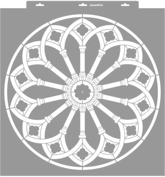 A rózsaablak, ablakrózsa vagy rozetta román és gótikus templomokon a főbejárat fölött, ritkábban az oldalbejáratok fölött elhelyezkedő, nagyméretű, küllős szerkezetű ablak. Szerkezete a gótikában egyre bonyolultabbá vált. Tartós, többször felhasználható áttetsző, rugalmas műanyag stencil. Ívelt felületekhez is használható. Felhasználói tippek: 1. Helyezd a fest