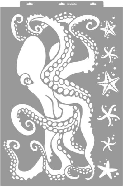 A polipok a mélytengerek igazi urai. Rendkívüli inteligenciájuk és extrém megjelenésüknek köszönhetően nem hagyhatjuk őket figyelmen kívül. Mint ahogy a polipos stencilekkel készült dekorációk, dísztárgyak mellett sem fog senki elmenni szó nélkük. Kiegészítőként tengeri csillagokat is társítottunk még ehhez a stencilhez. Tartós, többször felhasználható áttetsző